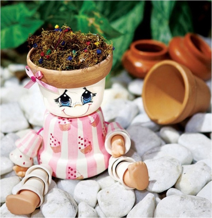 Отличный проект создания красивых игрушек из глиняных горшков.