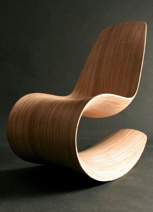 Кресло-качалка сделанное путем клейки шпона — уютная мебель для хорошего отдыха.