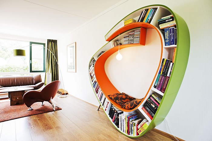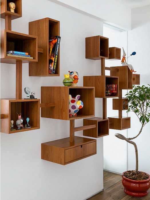 Оригинальный интерьер возможно создать благодаря просто крутым решениям с помощью прекрасной нестандартной полки.