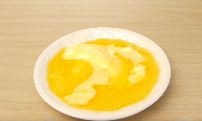 Накройте ещё тёплой посудой масло и подождите минуту.