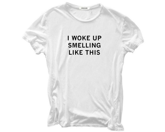 Как выглядит дорогая дизайнерская футболка? Натуральная хлопковая ткань простого серого или базового белого цвета и одна-единственная чёрная надпись: «I woke up smelling like this» («я пахну так, когда просыпаюсь»). Зато выбор надписи не случаен: футболка действительно пропитана ароматом дорогого парфюма Le Labo – Santal 33. Так что пользоваться другой туалетной водой поверх – бессмысленное преступление.