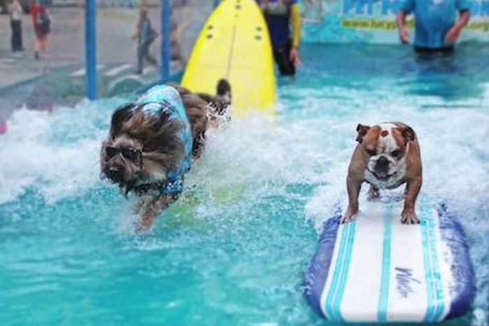 Самая тяжелая парадная платформа с собаками-серфингистами.
