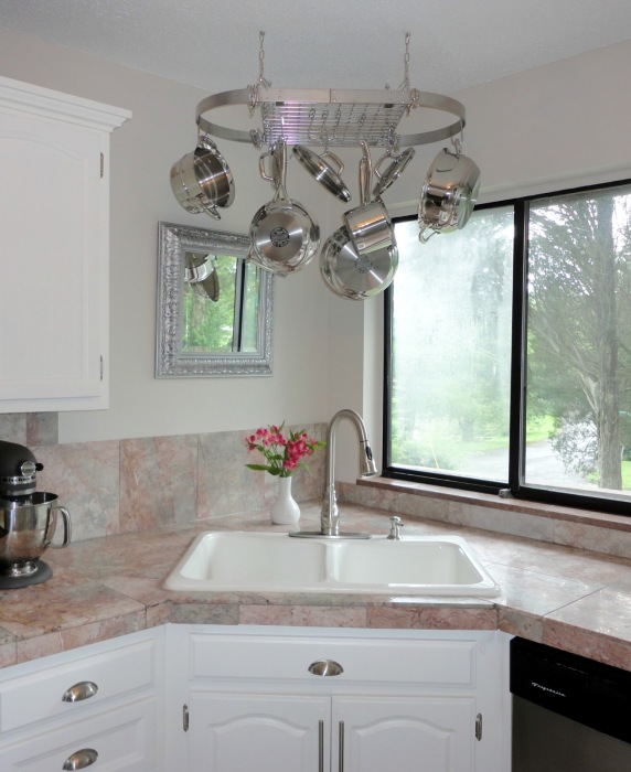 Расположить мойку в центральной части угловой кухни — действительно разумное решение. Ведь в процессе приготовления пищи среднестатистическая хозяйка моет продукты или руки несколько раз. До мойки в центре гарнитура добраться удобнее всего, вне зависимости от того, чем занимается хозяйка: режет овощи или достает их из холодильника. Ведь центр гарнитура равноудален от других его частей. Кроме того, подобное расположение мойки позволяет эффективно использовать угол гарнитура.